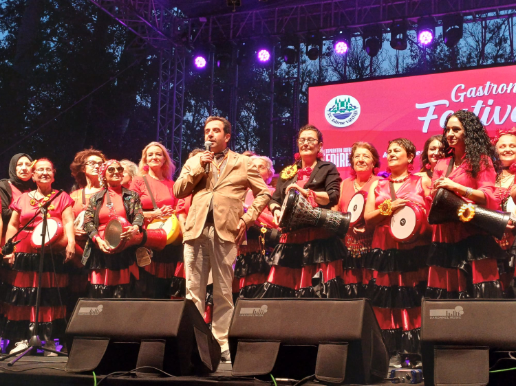 Topraktan Sofraya Edirne Gastronomi ve Yaşayan Miras Festivali kapsamında sahnede renkli anlar yaşandı. Ana sahnede ilk olarak “9/8’lik Eğlence” konseriyle Sevgili Günebakanlar Darbuka Topluluğu izleyicilere coşkulu bir ritim şöleni sundu.