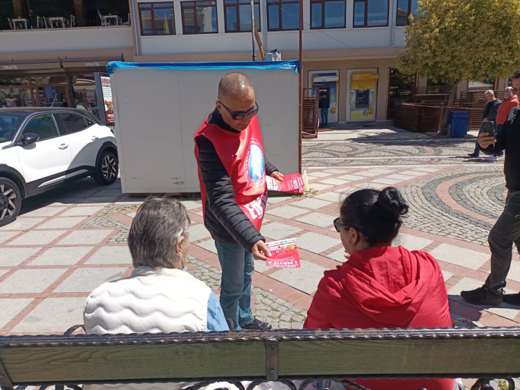 Basın açıklamasının ardından katılımcılar, 1 Mayıs'a davet broşürlerini esnaf ve vatandaşlara dağıttılar.