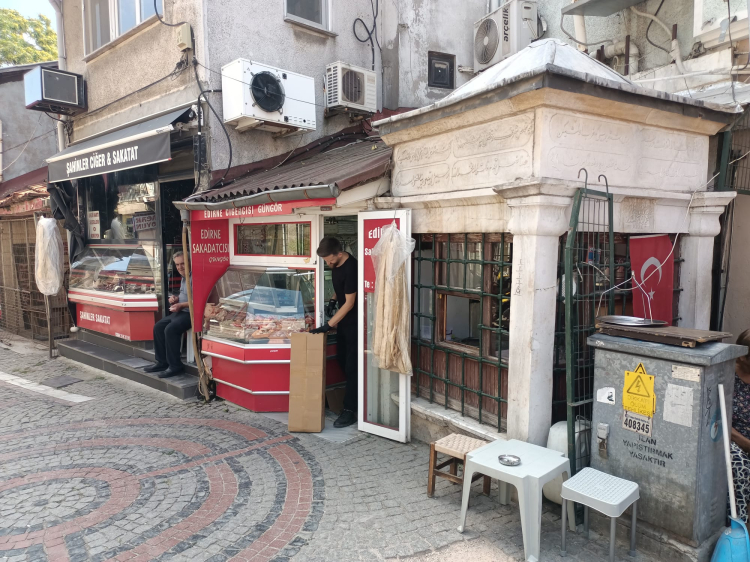 Edirne’nin Talatpaşa Mahallesi Tahtakale Caddesi’ndeki işletmelerin başında dış cephesiyle dikkat çeken tarihi yapı. Bazı vatandaşların farkında bile olmadığı, bazılarının ise ne olduğunu bilmediği kültür varlığı, günümüzde çay ocağı olarak kullanılsa da 1845 yılından bugüne ulaşmayı başarmış.