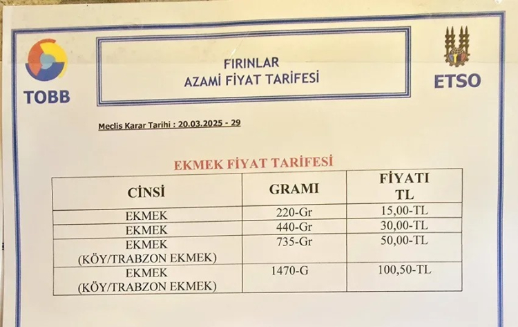 Edirne Ticaret ve Sanayi Odası’nın zam talebi, bakanlık tarafından onaylandı. Edirne’de 220 gram ekmek 15 TL’den fırınlarda satışa başlandı. 2025 yılı için geçerli olacak asgari ücretin açıklanmasının ardından, ekmek fiyatlarına yapılacak zam merakla bekleniyordu. Edirne dışında birçok ilde ekmek fiyatına zam gelmişti. ETSO’nun üyelerinin istediği zammın onaylanması ile beraber Edirne’de 220 gram ekmek 10 TL’den 15 TL’ye yükseldi.