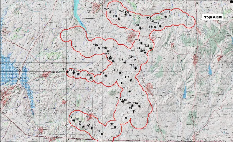 Rapora göre; projeye konu türbin noktalarına Korucu köyü sınırlarındaki en yakın konut, T4 türbin noktasına 605 metre mesafede; Pazardere köyü sınırlarındaki en yakın konut T31 türbin noktasına 665 metre mesafede; Hacı köyü sınırlarındaki en yakın konut, T38 türbin noktasına 780 metre mesafede; İbriktepe köyü sınırlarındaki en yakın konut, T42 türbin noktasına bin 245 metre mesafede; Beğendik beldesi sınırlarındaki en yakın konut, T14 türbin noktasına bin 710 metre mesafede; Turpcular köyü sınırlarındaki en yakın konut, T22 türbin noktasına bin 900 metre mesafede ve Yeniceçiftlik köyü sınırlarındaki en yakın konut T8 türbin noktasına 2 bin 800 metre mesafede yer alıyor. Buna göre, türbin noktalarına en yakın konut, T4 türbin noktasına 605 metre mesafede yer alan Korucu köyüne bağlı konut olması dikkat çekti.