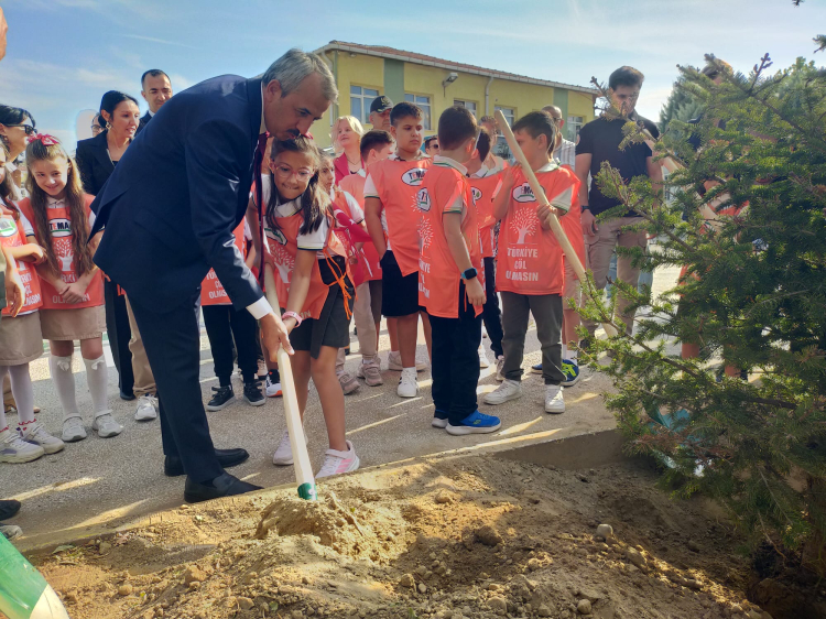 Öğrencilere orman ve doğa bilincinin aşılandığı etkinlikte, Vali Sezer öğrencilerle birlikte fidan dikip can suyu verdi.
