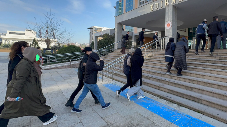 Aralarında Trakya Üniversitesi’nde öğrenim gören ve üniversiteden mezun olan kişilerin de bulunduğu 12 şüpheli gözaltına alındı. Edirne İl Emniyet Müdürlüğü’nde işlemleri tamamlanan şüphelilerden 6’sı geçtiğimiz gün çıkarıldığı mahkemece adli kontrol şartıyla serbest bırakıldı.