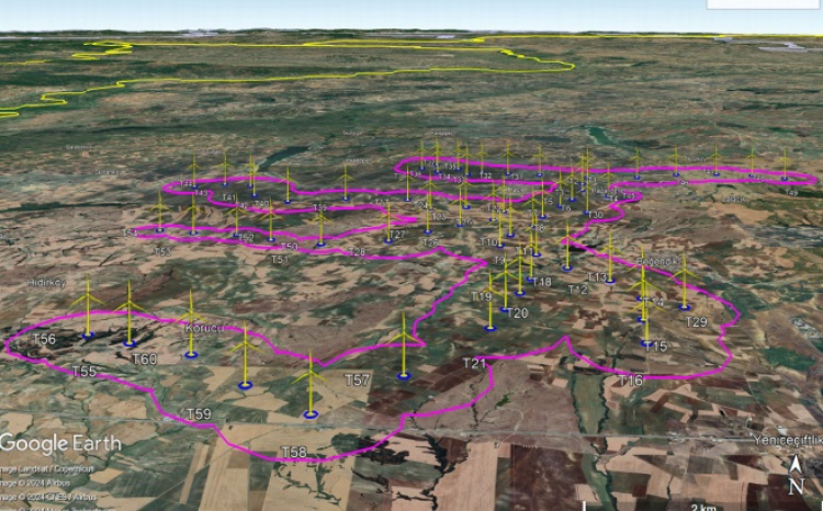 Dosyada, proje faaliyetinden bölgede yaşayan ve geçimini sağlayan yöre halkının birinci derecede etkileneceği açıklanırken; proje konusu faaliyet kapsamında kurulması planlanan türbin noktalarının yerleşimlere yakınlıklarına yer verildi. Türbin noktalarına en yakın hassas yapının, T32 türbin noktasına 95 metre mesafede yer alan Hacı köyü yerleşimine bağlı ağıl olduğu ifade edilirken; santral alanının bir kısmının Korucu köyünün yerleşimi içerisinde kaldığı açıklandı. Santral alanının Pazardere köyü merkezine kuş uçuşu 220 metre, Beğendik beldesi merkezine kuş uçuşu 540 metre, Maltepe köyü merkezine kuş uçuşu 760 metre, Hacı köyü merkezine kuş uçuşu 760 metre, İbriktepe köyü merkezine kuş uçuşu bin 200 metre, Kozköy merkezine kuş uçuşu bin 300 metre, Hıdırköy merkezine kuş uçuşu bin 450 metre, Yeniceçiftlik köyü merkezine kuş uçuşu bin 550 metre, Lalacık köyü merkezine kuş uçuşu 2 bin metre, Karacaali köyü merkezine kuş uçuşu 2 bin 150 metre, Turpçular köyü merkezine kuş uçuşu 2 bin 250 metre, Esetçe beldesi merkezine kuş uçuşu 3 bin 100 m ve Sarpdere köyü merkezine kuş uçuşu 3 bin 200 metre yakınlıkta olduğu belirtildi.
