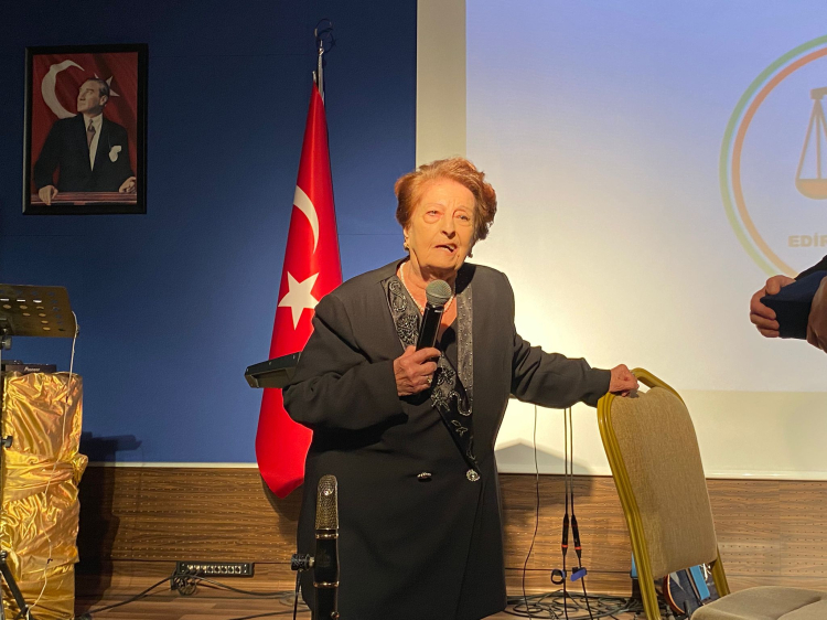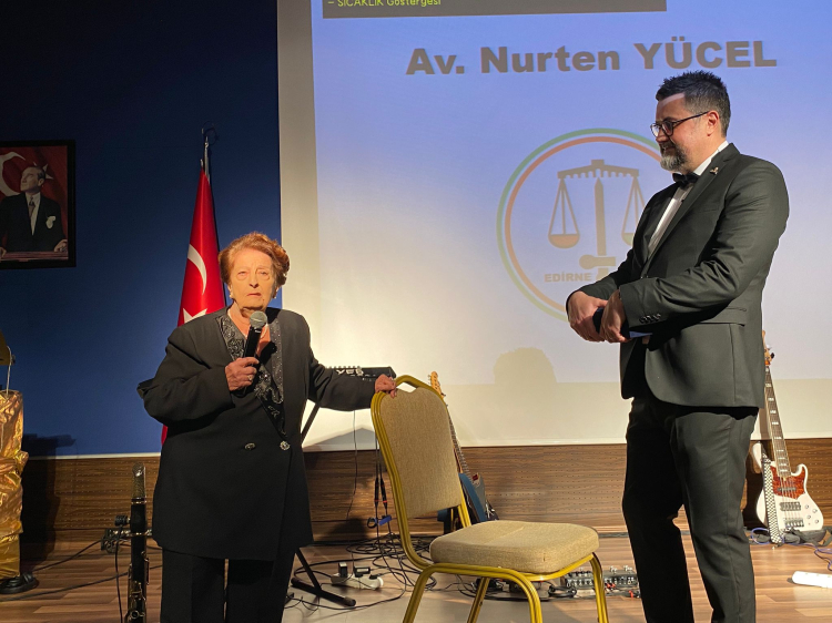 Edirne Baro Başkanı Avukat Gökhan Karakoç tarafından verilen plaket, salonda duygusal anların yaşanmasına neden oldu. Meslek hayatına 60 yılını adayan Yücel, alkışlar eşliğinde sahneye davet edilerek plaketini aldı.