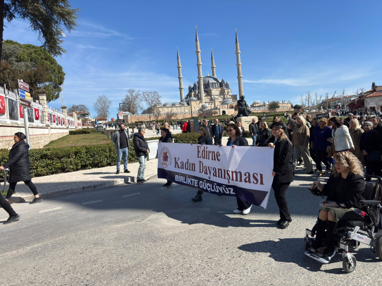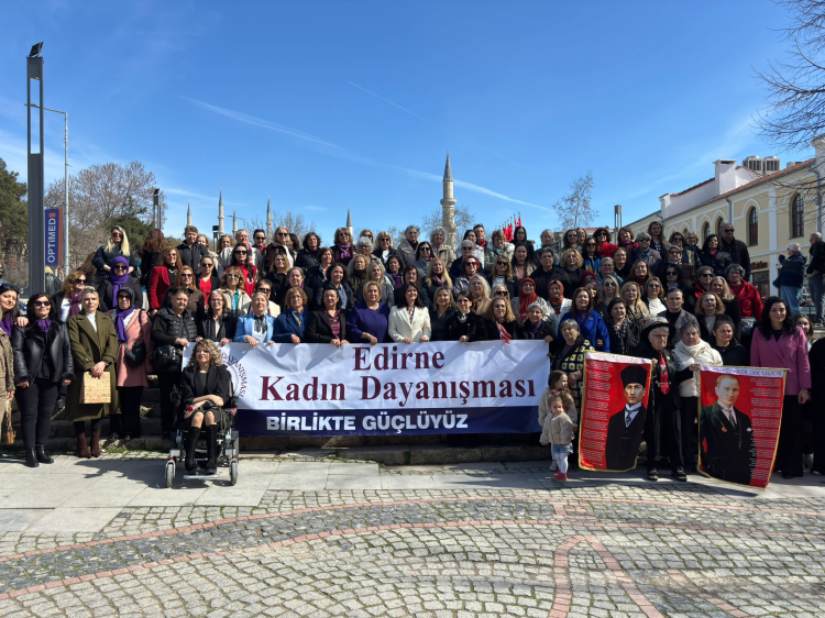 Edirne’de 8 Mart Dünya Kadınlar Günü kapsamında Zübeyde Hanım heykelinin önünden Atatürk anıtına kadar yürüyüş gerçekleştirildi. Yürüyüşün ardından Atatürk anıtında tören düzenlendi.
