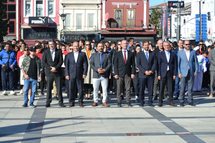 İl Gençlik ve Spor Müdür Vekili Zekeriya Bayrak, Edirne Amatör Spor Kulüpleri Federasyonu Başkanı Muzaffer Yıldırım, kurum müdür yardımcıları, antrenörler ve sporcuların katıldığı kortej, Edirne Belediye Bandosu eşliğinde Saraçlar Caddesi'nden Atatürk Anıtı'na yürüdü. Yürüyüşün ardından tören anıtta devam etti.
