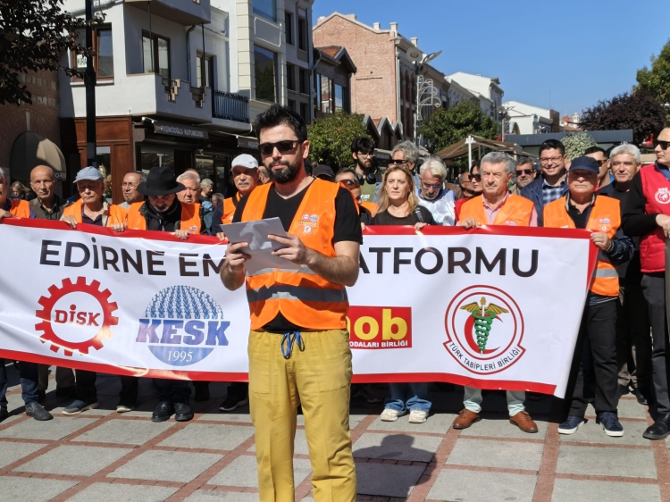 Saraçlar Caddesi’nde düzenlenen basın açıklamasına, kentteki bazı siyasi partiler, dernekler ve öğrenciler de destek verdi. Basın açıklamasını, Edirne Tabip Odası Yönetim Kurulu Üyesi Utku Okçu okudu.