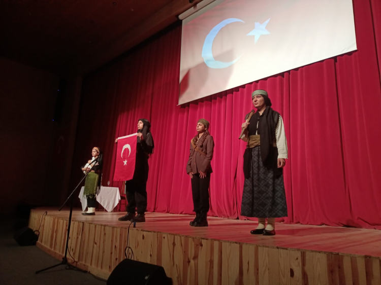 Konuşmaların ardından Kurtuluş Savaşı’nın Nene Hatun, Halide Edip Adıvar, Kara Fatma gibi kadın kahramanlarının canlandırıldığı oratoryo gösterisi sunuldu. Gösterinin ardından Atatürk’ün Bursa’da katıldığı balodaki son valsi ve zeybeği canlandırıldı. Edirne Belediyesi Modern Dans Eğitmeni Göktuğ Fıçıyapan ve öğrencisi Selin Can tarafından sunulan dans gösterisi katılımcıları duygulandırırken; yoğun alkış aldı.