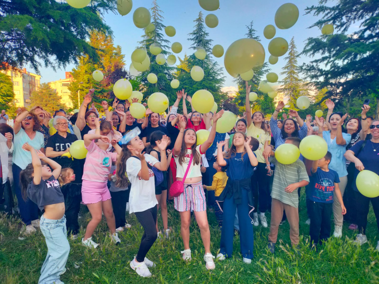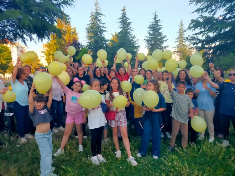 Edirne'de bulunan Gölet Parkı'nda buluşan onlarca kadın, piknik yapıp darbukalarıyla müzik çaldılar, ardından balonları gökyüzüne uçurdular.