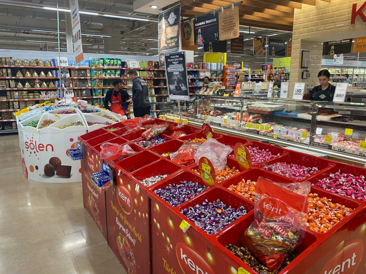 Kentteki büyük zincir marketler, müşterilerine geniş ürün yelpazesi sunarak bayram alışverişine hareketlilik kazandırdı. Çikolatalı, meyveli, lokumlu ve klasik akide şekerleri başta olmak üzere çeşitli tatlarla süslenen reyonlar, bayram alışverişi yapan vatandaşların ilgisini çekiyor.