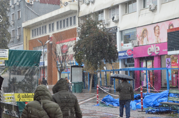 Edirne’de hava sıcaklığının düşmesiyle birlikte beklenen kar yağışı saat 12.00’de başladı. Kent merkezinde sabah saatlerinden itibaren yağmur çiselemesi, yerini kar yağışına bıraktı.