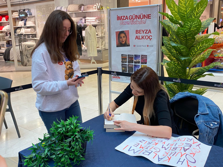 “3391 Kilometre”, “Karantina”, “Sınır” ve “Asansör” gibi milyonlara ulaşan eserlerin yazarı olan Beyza Alkoç, imza günü boyunca uzun kuyruklar oluşturan okurlarıyla tek tek ilgilendi. Kitaplarını imzalayan Alkoç, hayranlarıyla sohbet edip fotoğraf çektirmeyi de ihmal etmedi.
