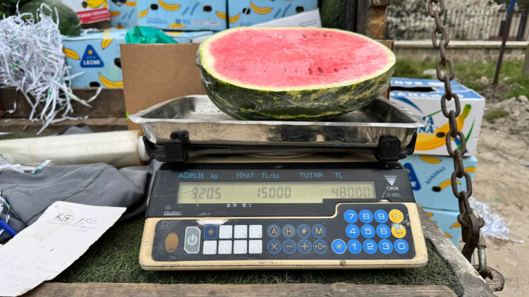 Vatandaşların genellikle yarım karpuzu tercih ettiğini dile getiren Sarıkaya, "Karpuzun tanesi bin lira olunca, biz de çareyi bölmekte bulduk. Yarım karpuz 500 liradan alıcı buluyor. Şu an için talep daha çok yarım karpuz yönünde" dedi.
