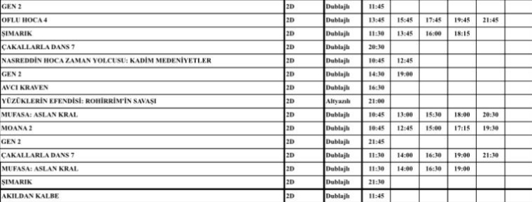 İşte 20 - 26 Aralık 2024 tarihleri arasında gösterimde olacak film listesi:
