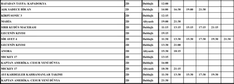İşte 14- 20 Mart 2025 tarihleri arasında gösterimde olacak film listesi: