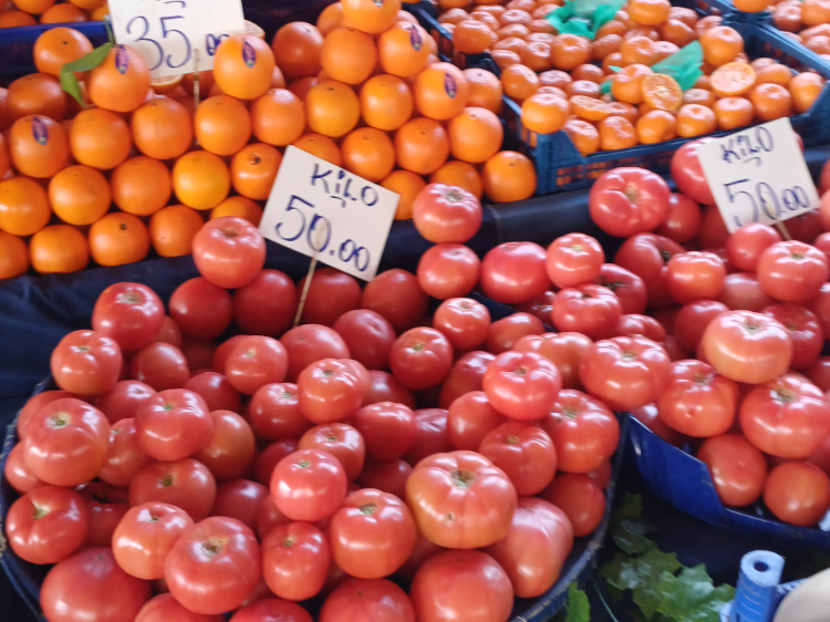 Pazarda esnaf ürünleri olabildiğince uygun fiyata vatandaşla buluşturmaya çalışıyor. Özellikle domates ve kışlık meyve fiyatları, her geçen hafta 5 ile 15 lira arasında düşüş gösteriyor. Domatesin kilogramı 50 lira ile 80 lira arasında değişirken, portakal 30 ile 50 lira arasında alıcısı ile buluşuyor.
