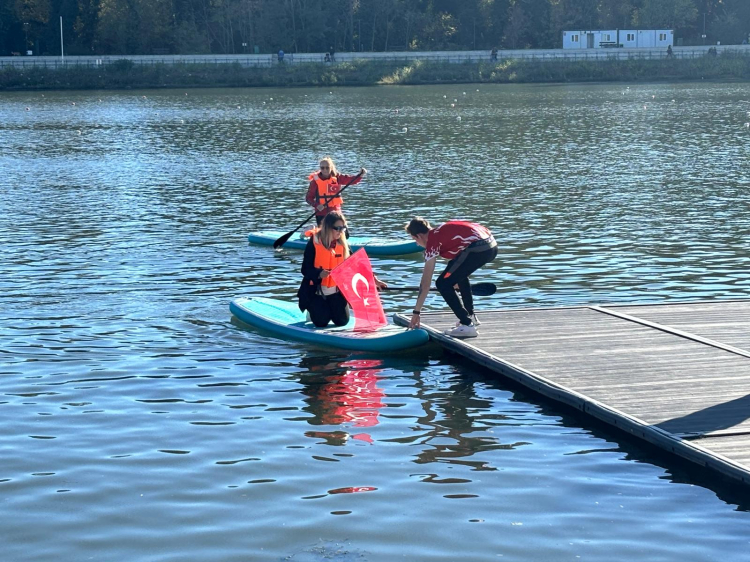 Trakya Üniversitesi Kırkpınar Spor Bilimleri Fakültesi tarafından yürütülen ve Bilimsel Araştırma Projeleri Birimi tarafından desteklenen “Kürek Sporu ile Rekreasyonel Faydaların Yaygınlaştırılması – Geleceğe Kürek Çek” projesi kapsamında eğitim alan katılımcılar, 29 Ekim Cumhuriyet Bayramı dolayısıyla Meriç Nehri’nde düzenlenen etkinlikte kürek çekip bayrak açarak, Cumhuriyet coşkusunu yaşadı.