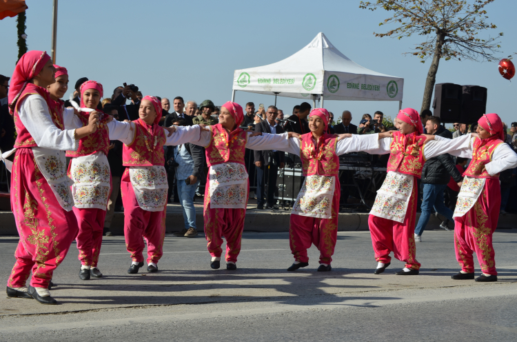 Atatürk Bulvarı'nda düzenlenen törende, Vali Sezer, Garnizon Komutanı Kolcu, Belediye Başkanı Akın'ın halkın bayramını kutlaması ile başlarken; Edirne halkı da ellerindeki Türk bayrakları ile Cumhuriyet Bayramı’nı coşkuyla kutladı. Belediye bandosu eşliğinde okunan İstiklal Marşı'nın ardından törende günün anlam ve önemini belirten konuşmayı Vali Sezer yaptı.