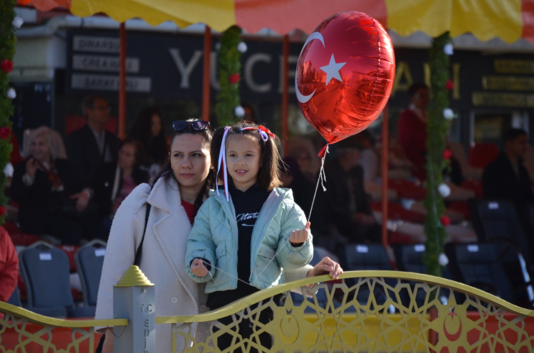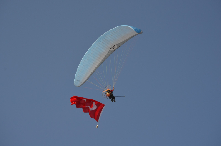 29 Ekim Cumhuriyet Bayramı töreninde gökyüzünde Türk Bayrağı ile uçan paramotor, vatandaşlar tarafından büyük beğeni topladı.