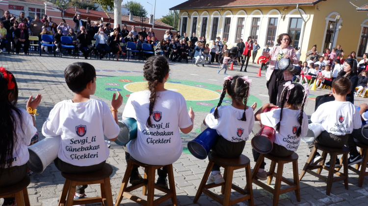 Edirne'de kadınların kurduğu 'Günebakanlar' darbuka ritim grubunun eğitmeni Sevgi Eryavaş tarafından okulda darbuka eğitimi gören öğrenciler, bugün ilk konserini verdi. 29 Ekim Cumhuriyet Bayramı kutlamaları çerçevesinde hazırlanan programda sahne alan öğrenciler, cumhuriyet coşkusunu doyasıya yaşayıp yaşattılar.