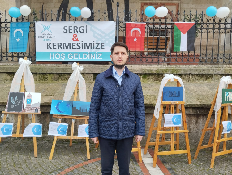 Doğu Türkistan’da yaşanan vahşete dikkat çekmek ve bir nebze de olsa oradaki çocuklara katkıda bulunabilmek adına kermesi düzenlediklerini söyleyen Türkiye Gençlik Vakfı Edirne İl Temsilcisi Muhammet Fatih Demir; “Türkiye Gençlik Vakfı Edirne İl Temsilciliği olarak bugünden itibaren iki gün süreyle Edirne'de, vakıftaki gönüllülerimizle birlikte Doğu Türkistan'da yaşanan zulüm ve insanlık dramına dikkat çekebilmek adına bir sergi ve kermes düzenliyoruz. Buradaki amacımız, Doğu Türkistan'da yaşanan drama, zulme bir nebze olsun dikkat çekmek. Dolayısıyla buradaki tablolarımızdan elde edilecek geliri, Doğu Türkistan'daki yetim çocuklara bağışlayacağız. Kermesimizde hem tablolarımız, hem de arkadaşlarımızın hazırladığı yiyecekler var. Bu tablolarımız da bizim üniversiteli hanım arkadaşlarımızın yapmış olduğu, bizzat kendi el ürünleri boyamalar. Hepsi bizim arkadaşlarımız tarafından yapıldı. İnşallah bunları Edirneli hemşerilerimize belli bir ücret karşılığında satışını yaparak gelirini Doğu Türkistanlı kardeşlerimize aktaracağız” dedi.