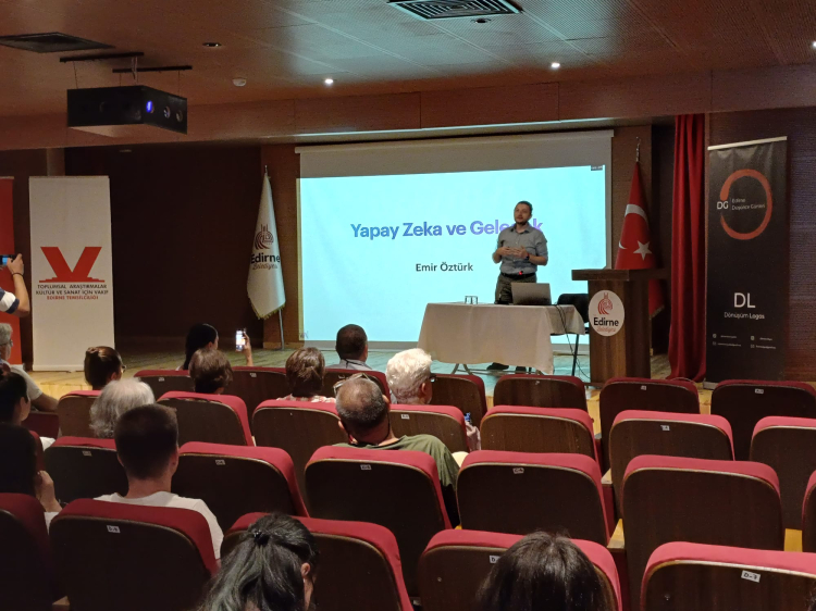 Edirne Belediyesi tarafından düzenlenen "Edirne Düşünce Günleri" etkinlikleri kapsamında, bugün Atatürk Kültür Merkezi önemli bir buluşmaya ev sahipliği yaptı. Dr. Emir Öztürk, “Yapay Zeka ve Gelecekteki Uygulamalar” başlıklı sunumuyla Edirnelilerle bir araya geldi.