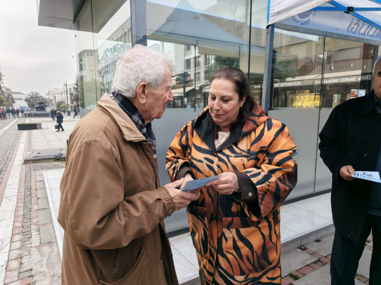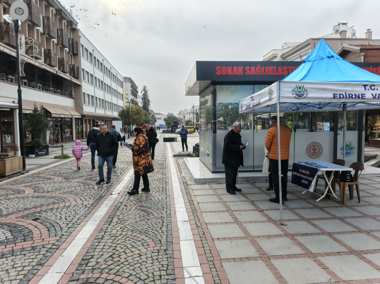 Edirne Valiliği İl İnsan Hakları Kurulu, 10 Ocak Dünya İnsan Hakları Günü nedeniyle Saraçlar Caddesi’nde kurulan stantta vatandaşlara broşür dağıttı.