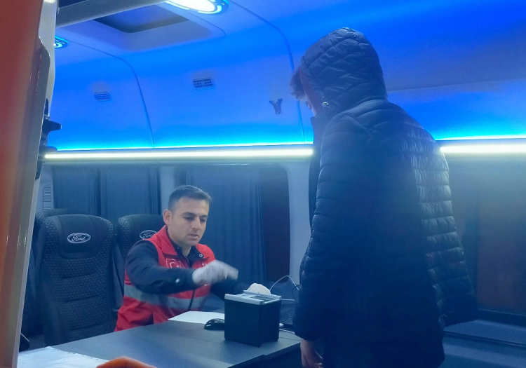 Polis ekipleri tarafından durdurulan göçmenlere, Mobil Göç aracında parmak izi kontrolü yapıldı.