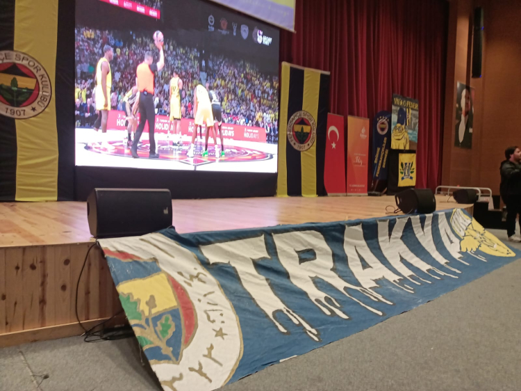 Abu Dabi’de oynanan karşılaşma için Atatürk Kültür Merkezi’nde (AKM) dev ekran kurulurken; başta Fenerbahçe Beko taraftarları olmak üzere Edirneliler salonu doldurdu. Sarı lacivert renklere bürünen salonda karşılaşma saat 20.00’de başladı.