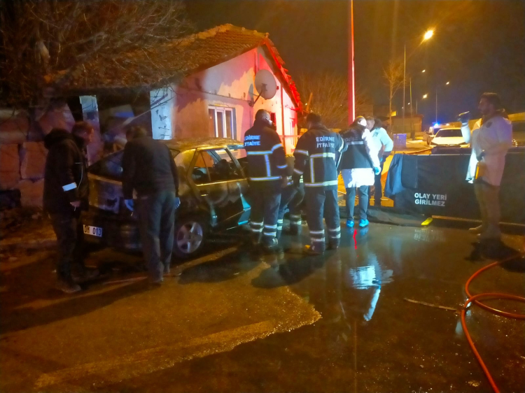 Edirne'nin güney çevre yolunda bir otomobilin kaza yapması sonucu otomobil alev aldı.