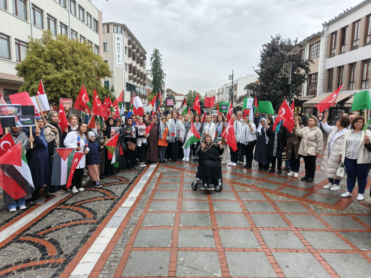 Adalet ve Kalkınma Partisi (AK Parti) Edirne İl Kadın Kolları Başkanlığı, İsrail'in Filistin'de yaptığı soykırıma karşı basın açıklaması düzenledi.