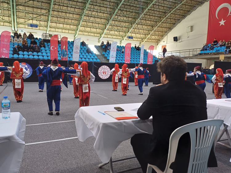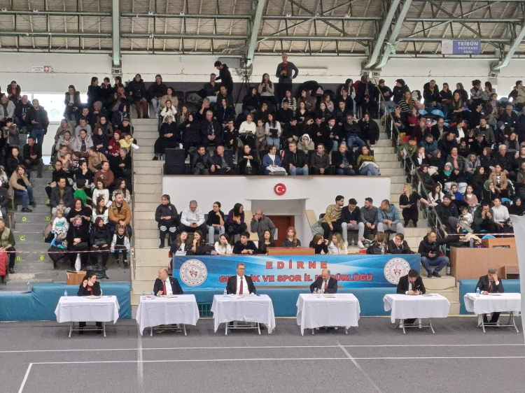 Edirne Mimar Sinan Spor Salonu halk oyunları yarışmalarına ev sahipliği yapıyor. Bugün gerçekleştirilen yarışmada okullar il birinciliği için yarışacak.