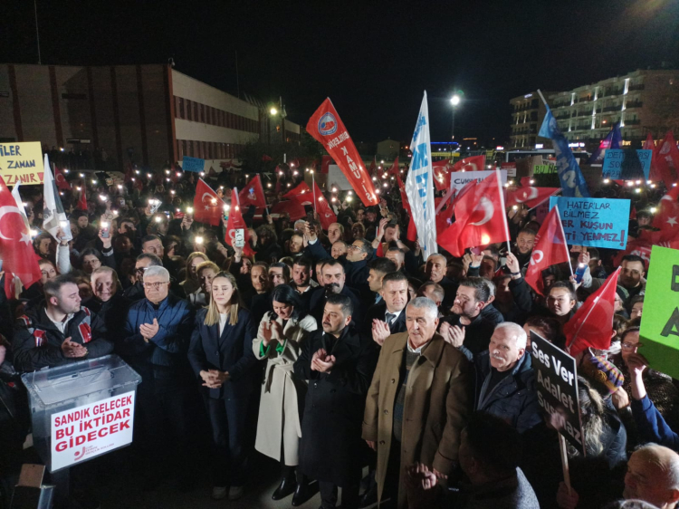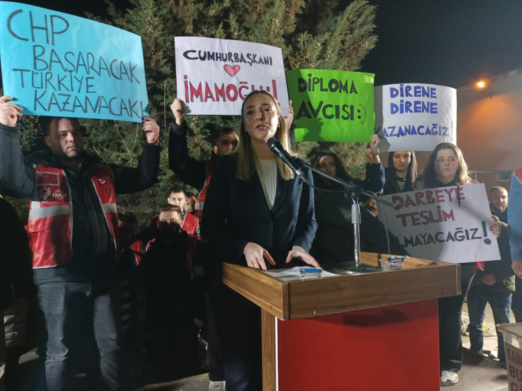 Yazgan'ın ardından konuşan İl Başkanı Taybıllı da adaletin olmadığı bir ülkede hiç kimsenin güvende olmadığını söyleyerek; "Bugün burada yan yana durmamızın önemi çok büyük. Ekrem İmamoğlu'na yapılan hepimizin geleceğine bir tehdittir. Burada kendi geleceğimize de sahip çıkıyoruz. Yapılan haksızlık hepimize yapılmaktadır. İstanbul halkının iradesi yok sayılmıştır. Adaletin terazisi birilerinin talimatlarına göre eğilemez.