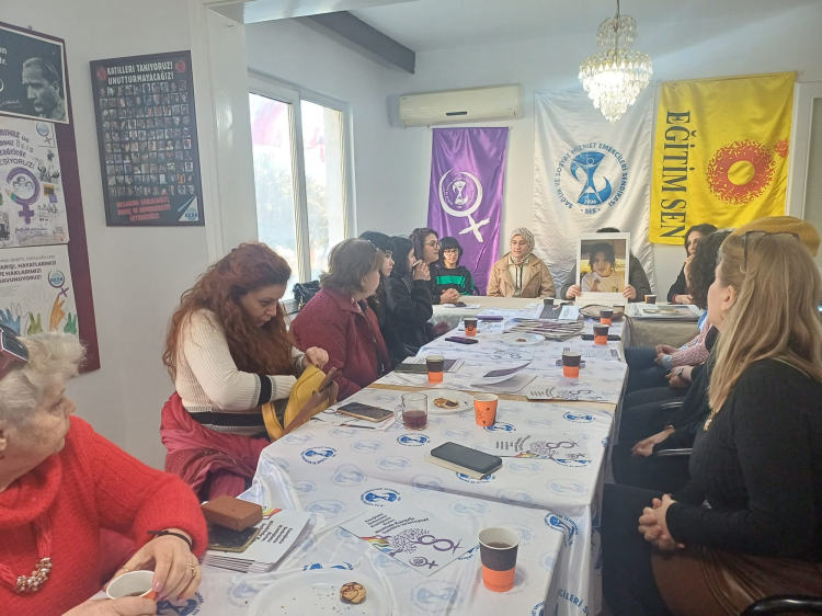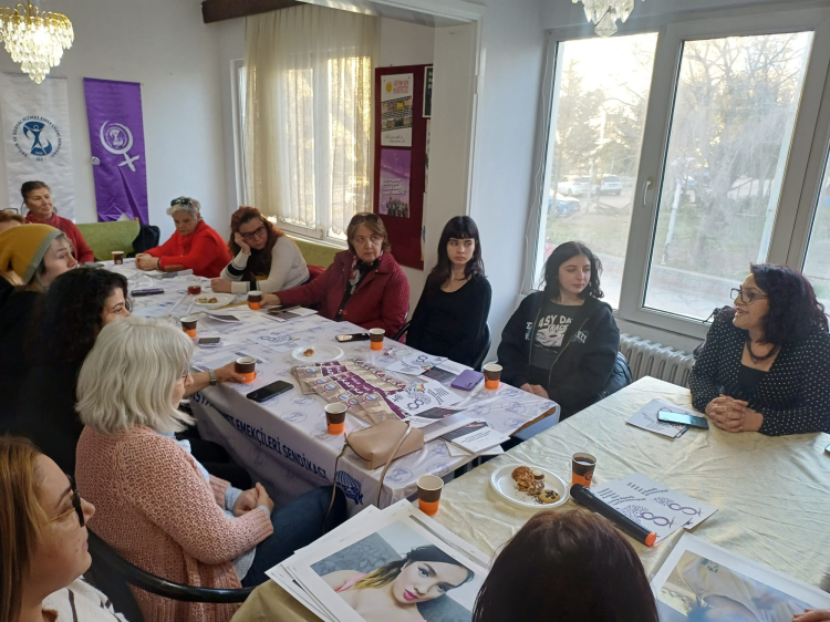 Söyleşi, Sağlık ve Sosyal Hizmet Emekçileri Sendikası (SES) Edirne Şube Başkanı Filiz Çakar’ın moderatörlüğünde gerçekleşirken, kadınların yaşadıkları sıkıntılar üzerinden, toplumsal olarak neler yapılması durumunda bu tip olayların yaşanmayacağı ele alındı.