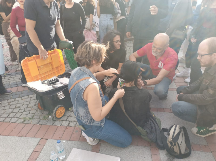 Basın açıklaması sırasında eyleme katılan bir kadın ise fenalaştı. Kadına ilk müdahaleyi basın açıklamasına katılan kadın doktor yaptı. Cadde üzerinde bulunan Kızılay çadırındaki görevliler de bölgeye gelerek fenalaşan kadının tansiyonunu ölçerken; kadının tansiyonunun düştüğü tespit edildi. Katılımcıların 112 Acil’e haber vermesi ile caddeye sağlık ekipleri de gelirken; fenalaşan kadına müdahale ettiler. Kadının sağlık durumunun iyileşmesinin ardından basın açıklaması tamamlandı.