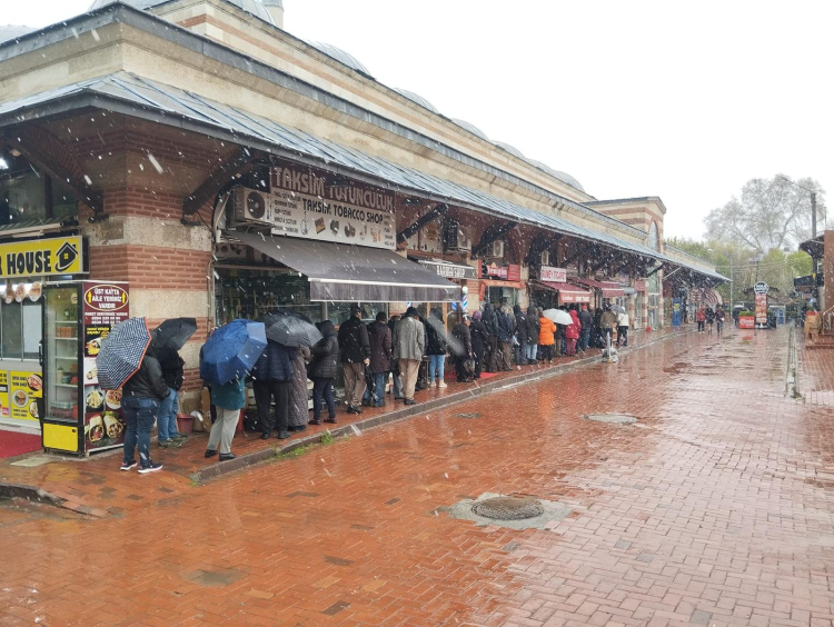 Kent merkezinde sabaha karşı başlayan kar yağışına rağmen onlarca vatandaş, cezaevi üretimi olan doğal ve uygun fiyatlı yumurtalara ulaşabilmek için soğuk havayı göze aldı. Vatandaşlar, ellerinde şemsiyeler, atkılar ve şapkalarla metrelerce uzayan sırada sabırla bekledi.