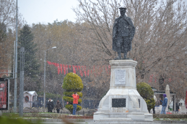 Edirne’de dün öğle saatlerinde başlayan ve gece saatlerine kadar devam eden kar, bugün saat 14.30 sıralarında yeniden başladı.
