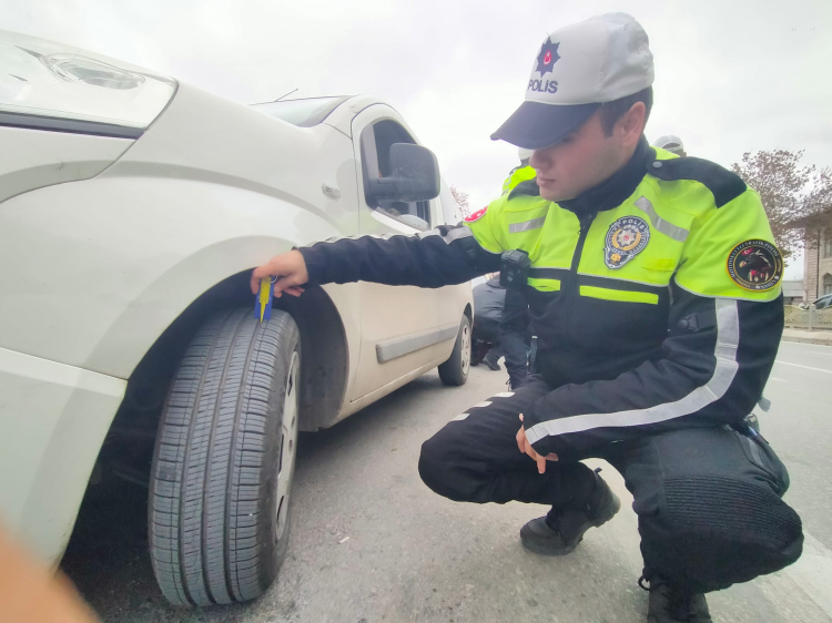 Eski cami önünde gerçekleştirilen denetimde ekipler, kış lastiği takma zorunluluğu bulunan araçları durdurdu. Lastiklerin diş derinliklerini ölçen ekipler, kış lastiği bulundurmayan veya standartlara uymayan sürücülere 4 bin 69 lira idari para cezası uyguladı.