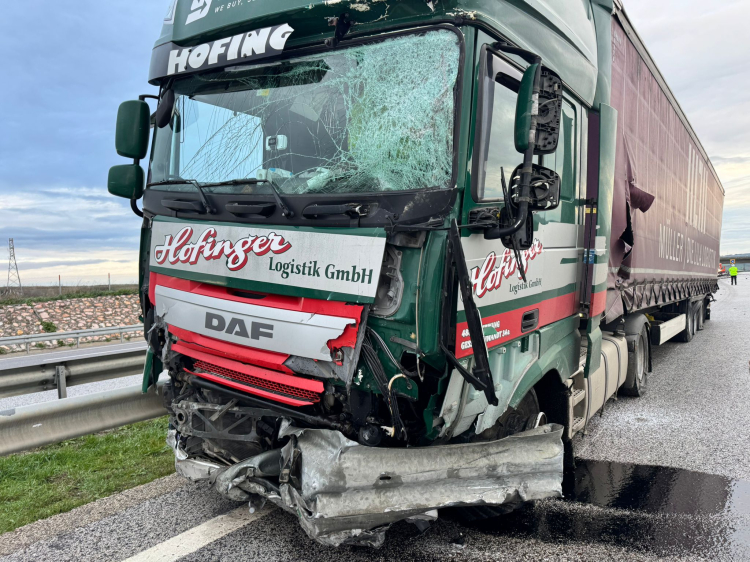 Edirne otoyolundan Kapıkule Sınır Kapısı istikametine seyir halinde olan E.M’nin kullandığı PA 68** MB plakalı TIR, sürücüsünün direksiyon hakimiyetini kaybetmesi sonucu bariyerlere çarptı. Metrelerce sürüklenen TIR, adeta bariyerleri biçip geçti.