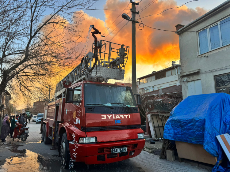 Edirne’nin Yıldırım Beyazıt Mahallesi’nde çıkan depo yangınına müdahale sürüyor.
