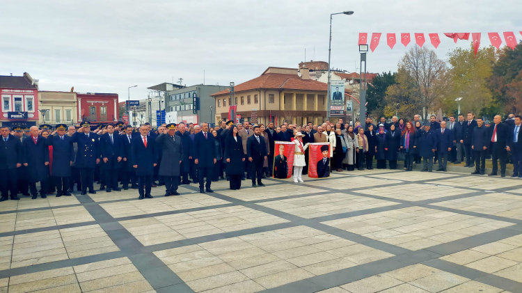Kutlama etkinlikleri çerçevesinde Atatürk Anıtı'nda çelenk sunma töreni düzenlendi. Edirne Valisi Yunus Sezer'in, Garnizon Komutanı Tuğgeneral Yüksel Kolcu'nun ve Edirne Belediye Başkanı Filiz Gencan Akın'ın çelenk sunumuyla başlayan tören, saygı duruşunda bulunulması ve İstiklal Marşı'nın okunmasıyla sona erdi.