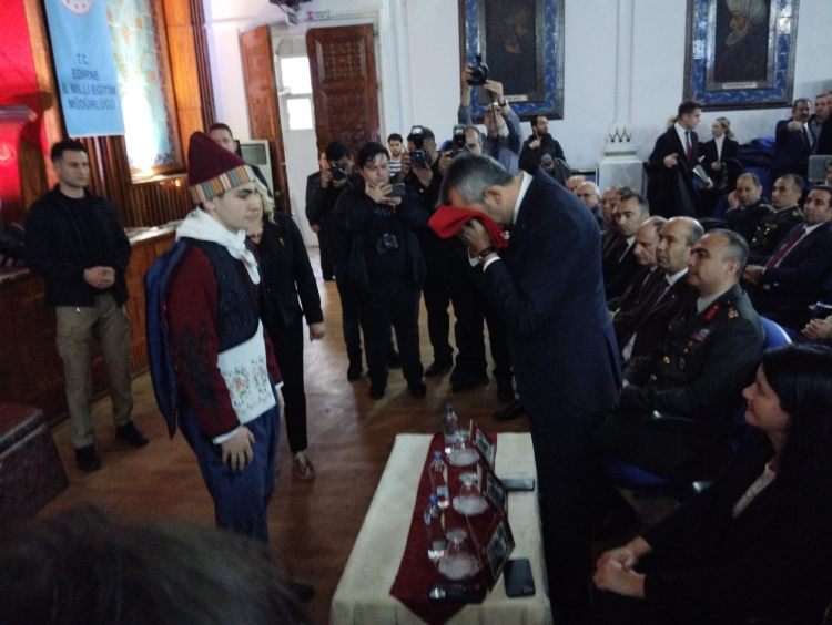 Edirne Valisi Yunus Sezer’in yanı sıra, Edirne Belediye Başkanı Filiz Gencan Akın, Garnizon Komutan Yardımcısı 9’uncu Hudut Tugay Komutanı Bülent Barış Sarp, Edirne İl Emniyet Müdürü Onur Karaburun ve kurum müdürlerinin katıldığı program Edirne Lisesi öğretmen ve öğrencilerinin hazırladığı söz ve müzik korosunun “Atatürk’ün Edirne’ye Gelişi” isimli sahne gösterisiyle son buldu.