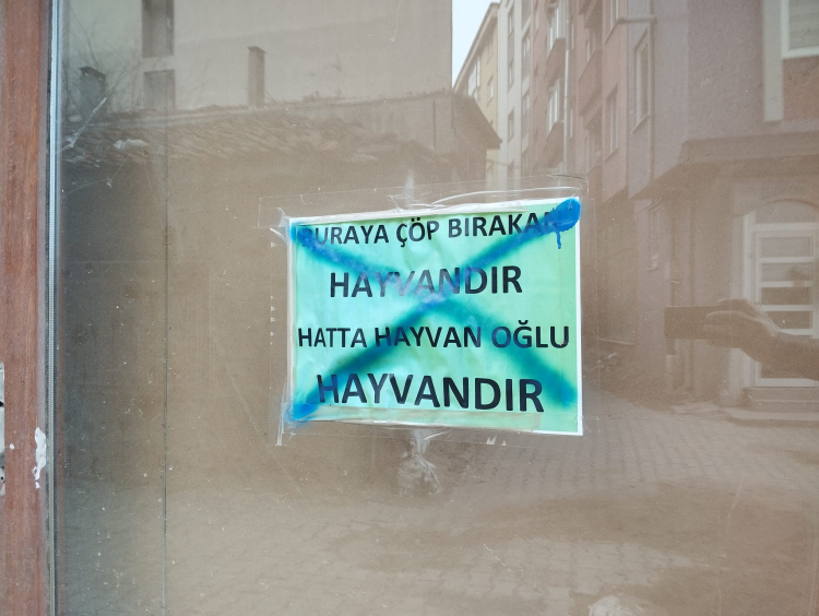 Tüfekçi Ahmet Ağa Sokağın araç trafiğine kapalı bölümünde bir deponun önüne sürekli çöp atılmasından bıkan mahalle sakinleri, çareyi deponun camına yazı yazmakta buldu. Deponun camına “Buraya çöp bırakan hayvandır. Hatta hayvan oğlu hayvandır” yazdı. Sokağa çöp dökülmesinden rahatsız olanların yazdığı bu yazının üzerine de kimliği belirsiz bir kişi tarafından sprey boyayla “X” işareti yapıldı.