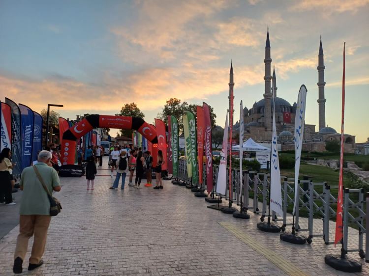 Birçok şehir ve ülkeden Edirne'ye gelen sporcular sabahın ilk ışıkları ile birlikte Selimiye Camii Meydanı’nda bulunan başlangıç noktası etrafında yerini alarak ısınmaya başladı.