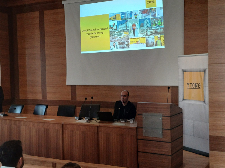Edirne’de Trakya Üniversitesi Mimarlık Fakültesi Mimar Sinan Amfisinde öğrencilere, İş Geliştirme Uzmanı Oruç İcen Cerbezer tarafından “Enerji Verimli ve Güvenli Yapılarda YTONG Çözümleri” semineri gerçekleştirildi. Cerbezer, doğru kullanımında YTONG malzemesinin binalara sağladığı faydaları aktardı.