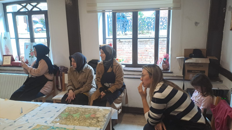 Atölyede ebru sanatının tarihçesi, kullanılan malzemeler ve teknikler hakkında bilgi verilirken, katılımcılar da kendi ebru çalışmalarını yaparak bu özel sanat dalını yakından tanıma imkânı buldu. Renklerin su üzerindeki dansına tanıklık eden katılımcılar, ortaya çıkardıkları eserlerle hem keyifli anlar yaşadı hem de sanatsal bir deneyim kazandı.