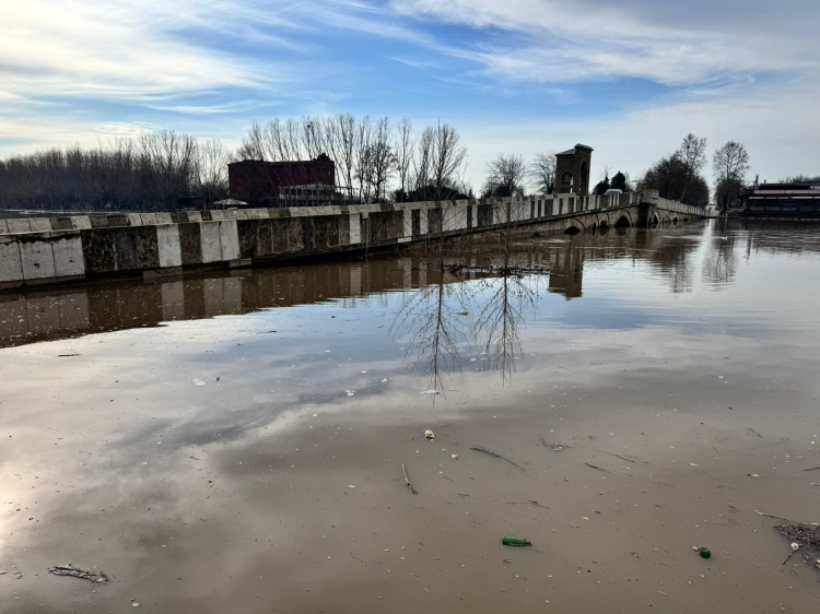 Debi düşüşü gözlense de Meriç Nehri için kritik olan "kırmızı kod" uyarısı devam ediyor. Son ölçümlere göre nehir debisi bin 447 m3/sn seviyelerinde seyrederken, suyun yerleşim yerlerine ulaşmasını kıyıdaki seddeler engelliyor.