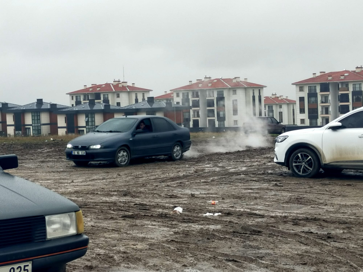 Hastaneye gelen ve araçlarını otoparka bırakan vatandaşlar, zor anlar yaşadı. Araçların sürekli hareket etmesiyle birlikte toprağın bataklığa dönüşmesiyle araç sürücüsü ilerlemekte güçlük çekti.