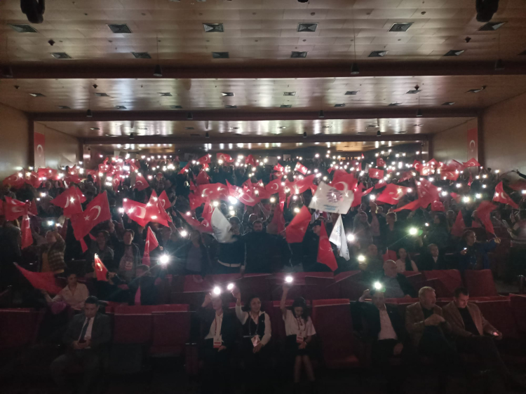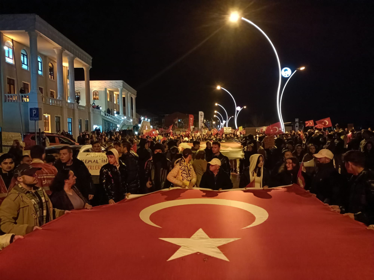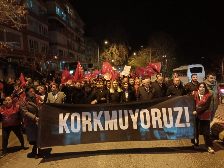 Taybıllı, Edirne Belediyesi Atatürk Kültür Merkezi ve Belediye Konservatuvarı önünden CHP Edirne İl Örgütü binasına binlerce katılımcıyla gerçekleştirilen yürüyüşün ardından konuşma yaptı.